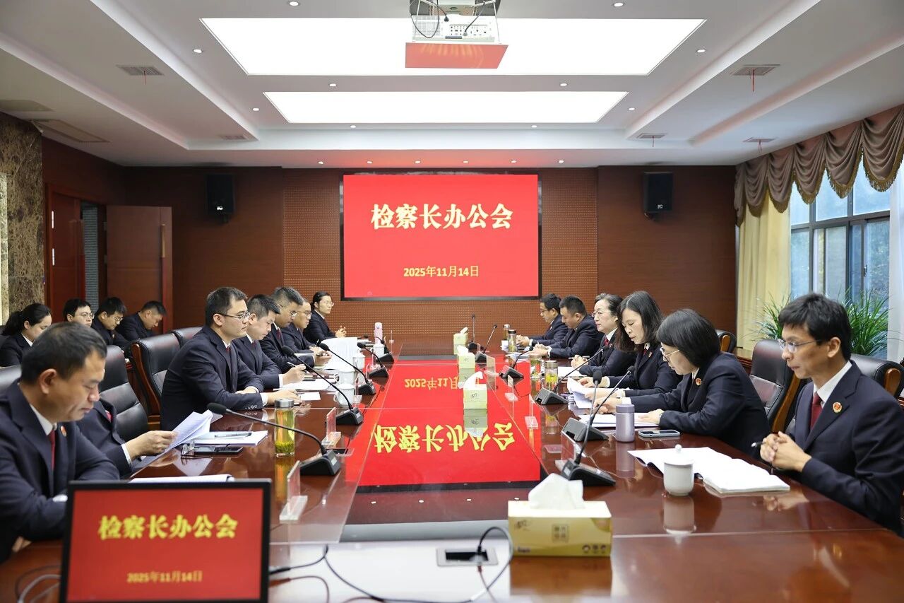 11月14日上午,江都检察院召开检察长办公会,传达学习贯彻党的二十届四中全会精神和大检察官研讨班精神,研究布置相关工作。院领导班子成员、中层干部参加会议。