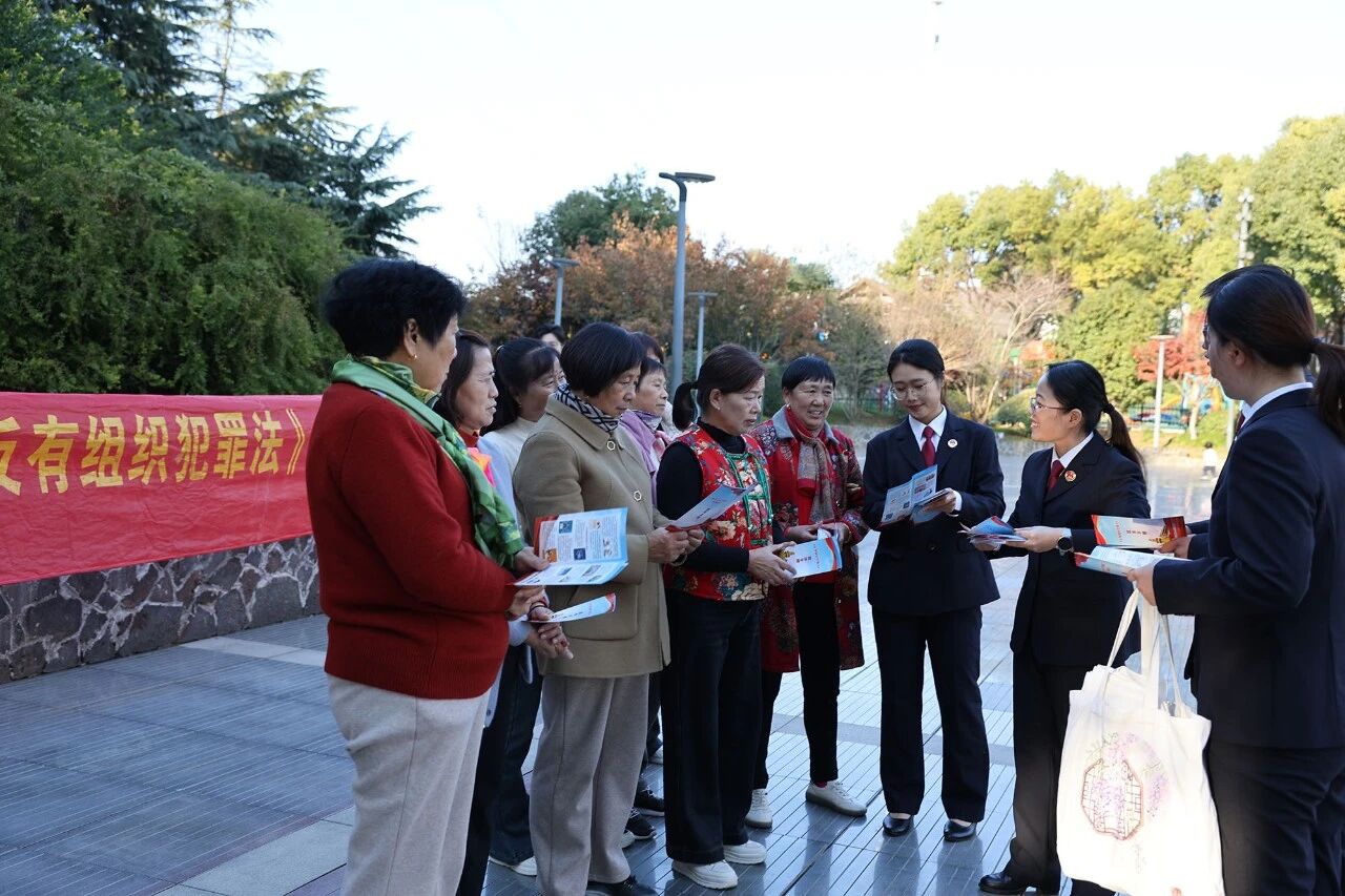 为深入贯彻落实《反有组织犯罪法》,进一步提升群众法治意识,11月20日,江都检察院青年志愿者服务队在区自在公园开展《反有组织犯罪法》宣传活动。