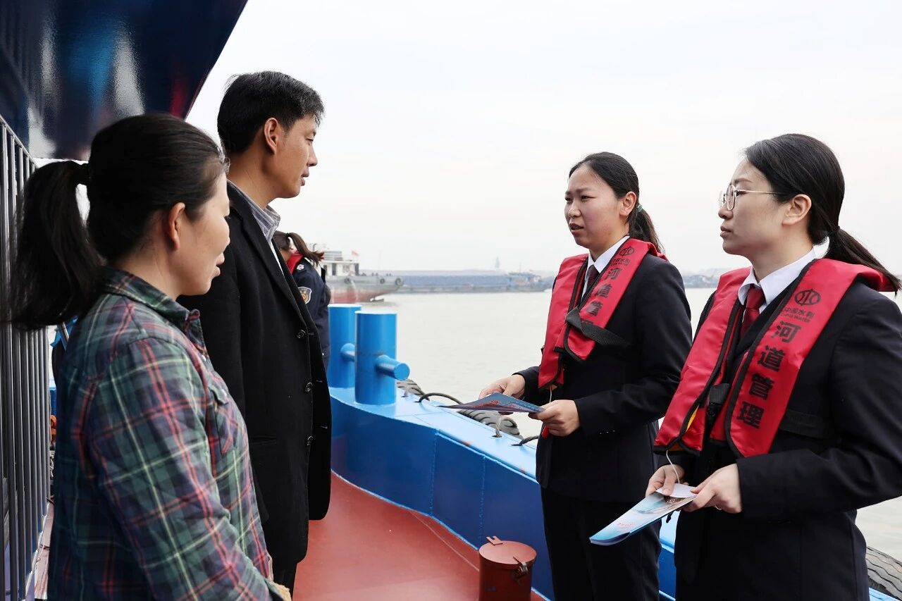 巡查过程中,检察干警充分立足公益诉讼检察职能,创新采用“重点巡查+登船普法”双模式,精准发力守护水域生态。在邵伯船闸重点水段、生态敏感水域,检察干警与联盟单位工作人员一同细致排查,重点查看岸线违规占用、违法污水排放等破坏水生态的行为;同步登船检查船舶生活垃圾、生活污水、含油污水等污染物的分类储存与规范处置情况,严密防范船舶污水直排污染水体问题发生。