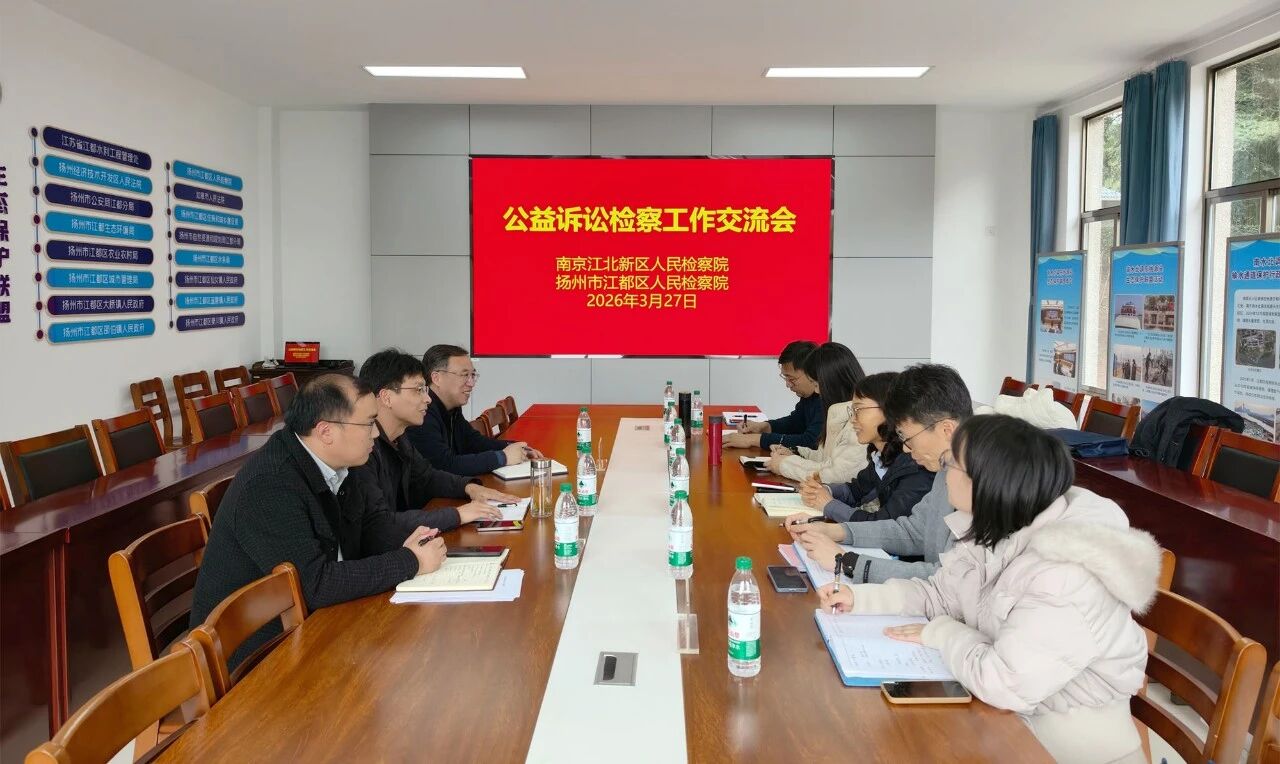 近日,南京市江北新区检察院副检察长何立超带队至江都调研南水北调东线源头生态保护联盟工作及公益诉讼检察工作。江都检察院检委会专职委员蔡军、联盟成员单位江苏省江都引江水利工程管理处水政保卫科科长邵林陪同调研。